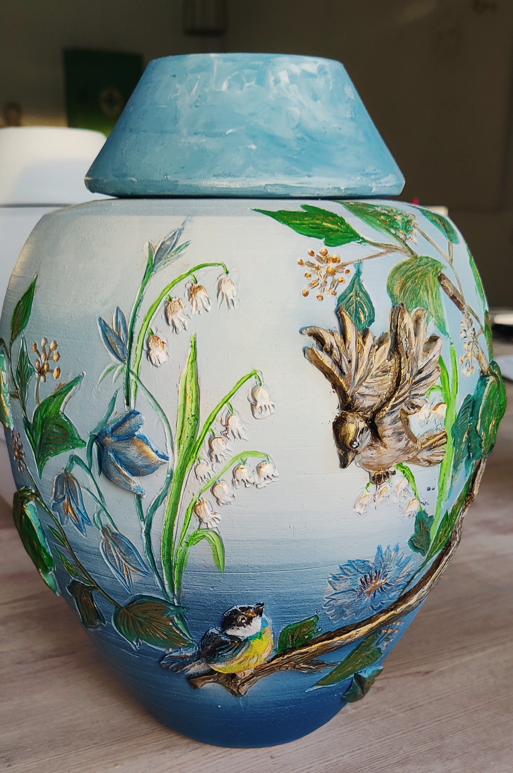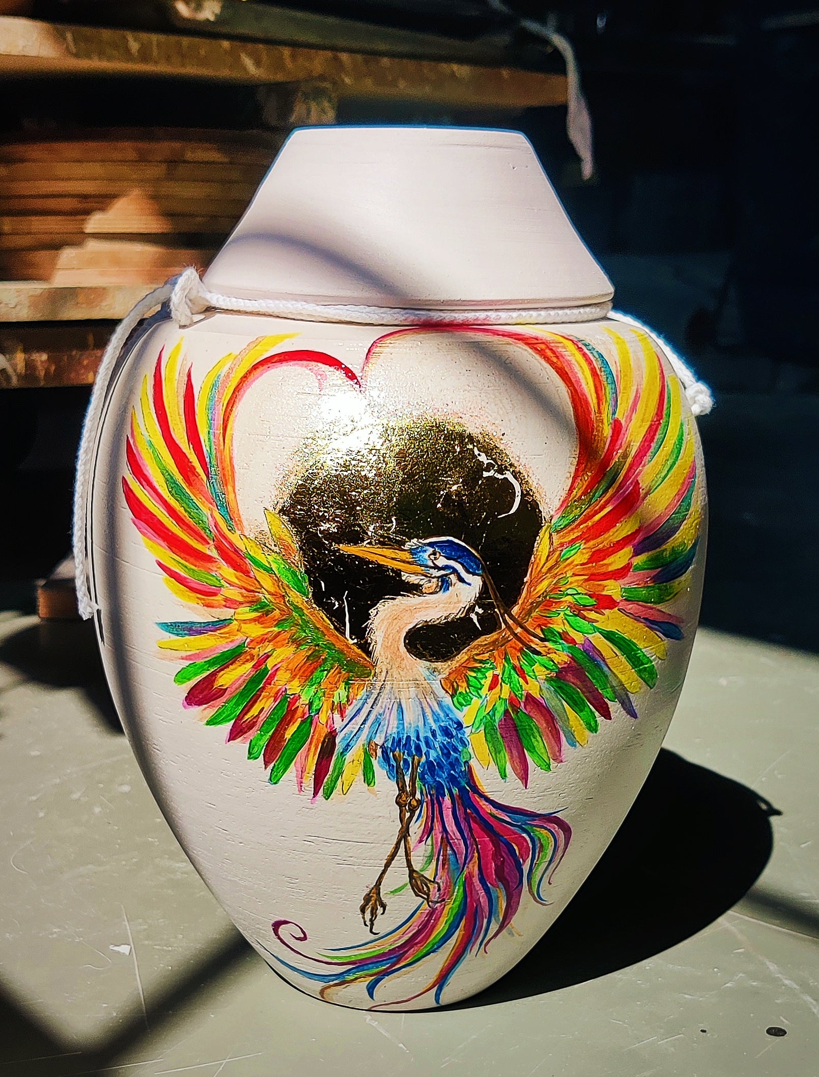 Alkuun olin kovin epäileväinen, enkä kovin vakuuttunut oliko valinta tilata uurna ilman mitään toivetta oikea, mutta nähtyäni lopullisen työn, en ollut uskoa silmiäni. Tiesin, että äitini on ollut pakko olla kanssasi kun olet valmistanut uurnaa, tuo lintu ja kaikki sen ympärillä oleva on ollut minun ja äitini yhteinen salaisuus ja kukaan muu ei tiedä mitä ne kuvastavat tai merkitsevät. Kiitos🙏