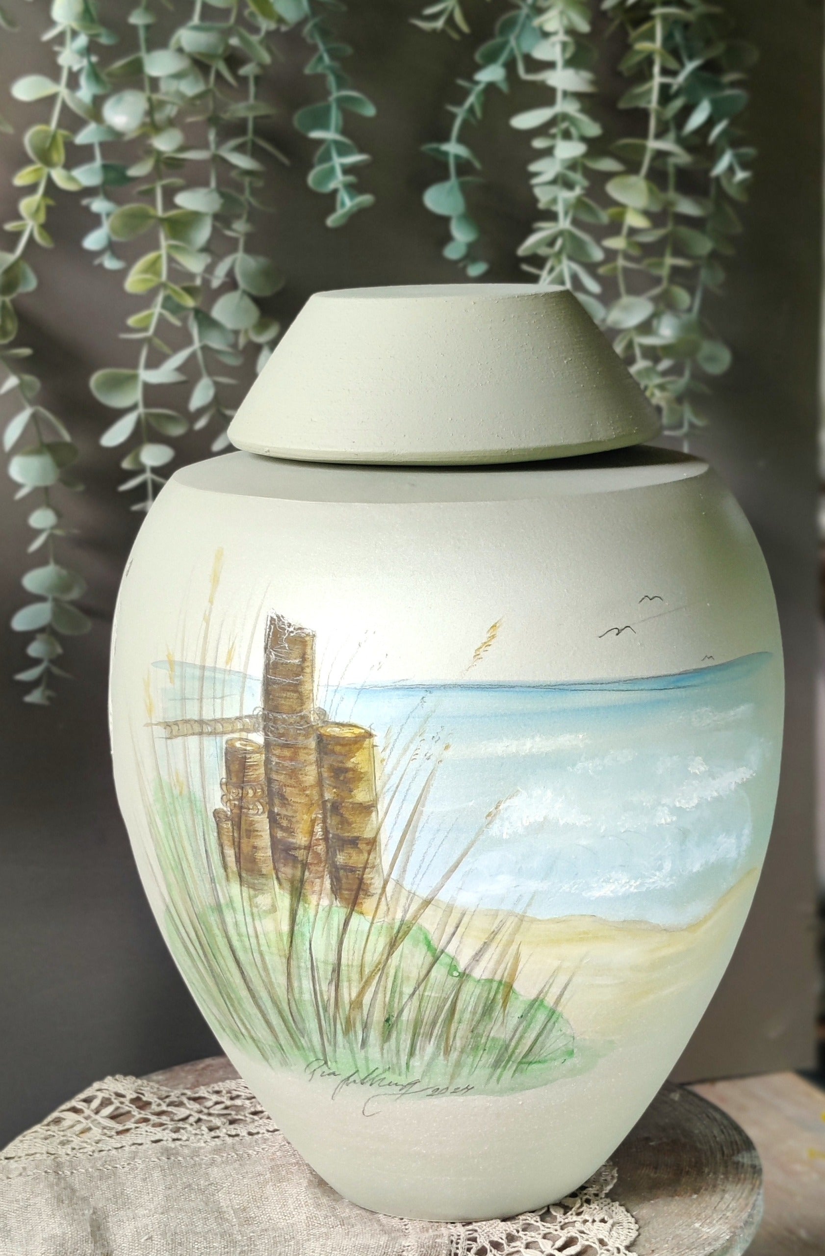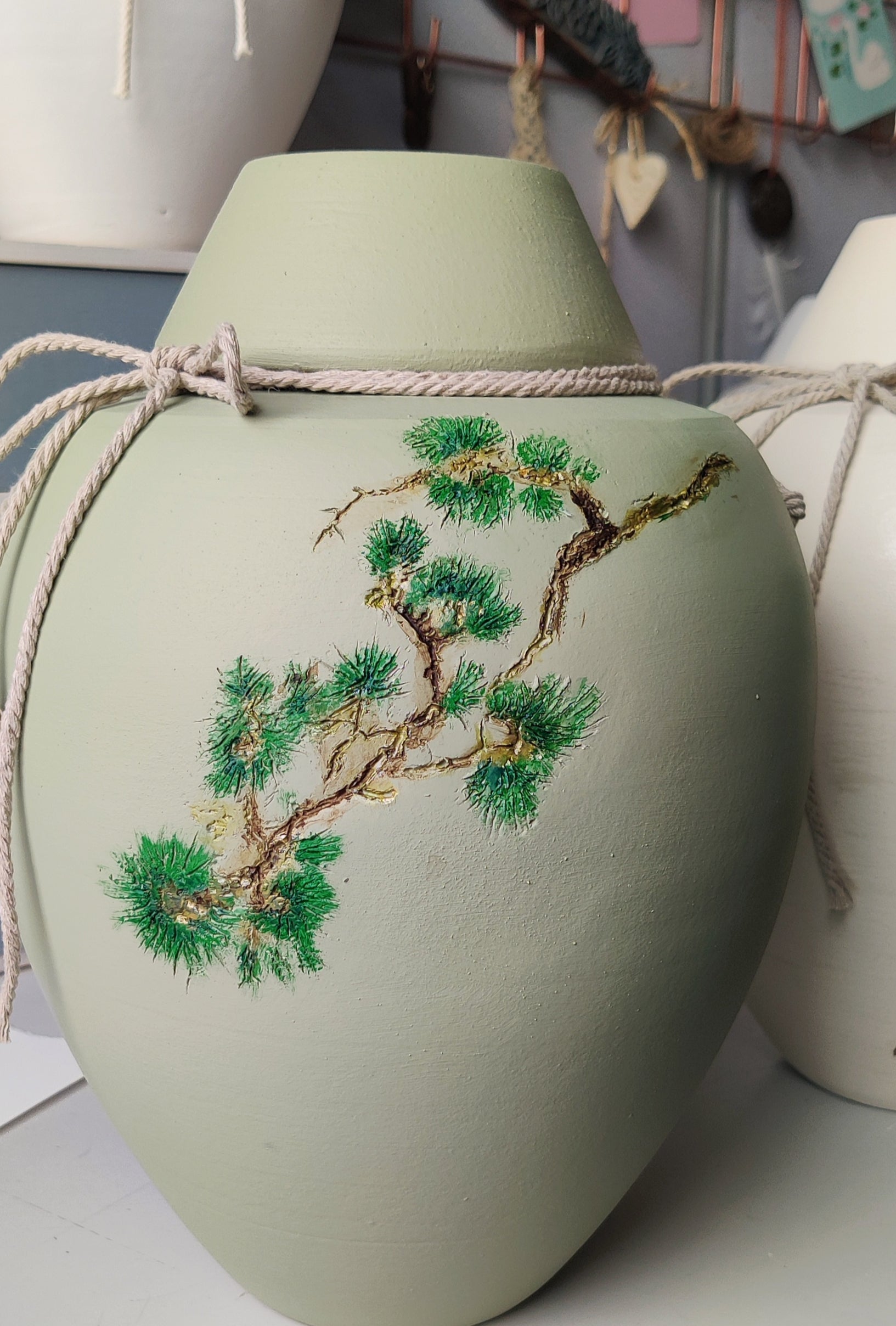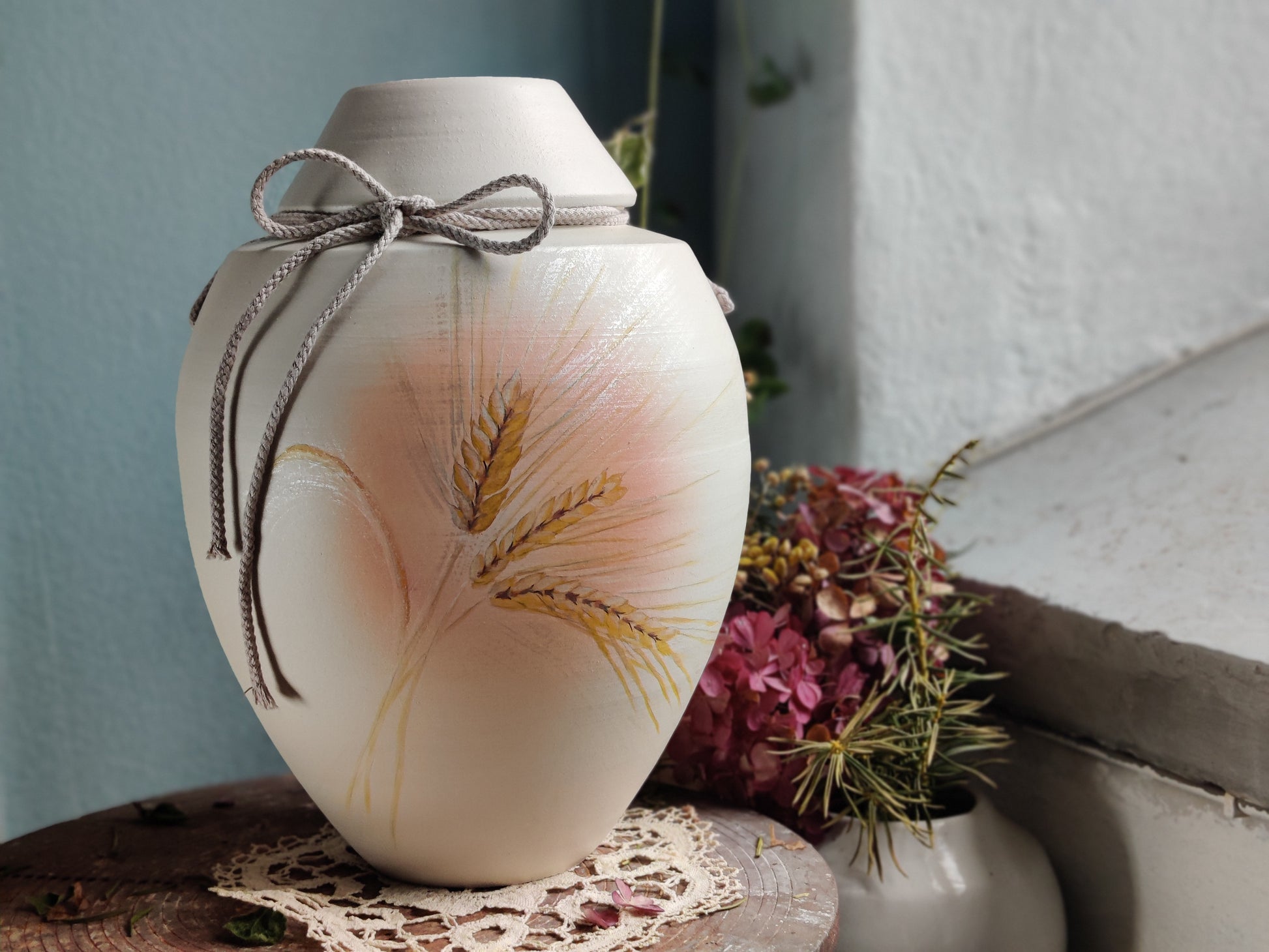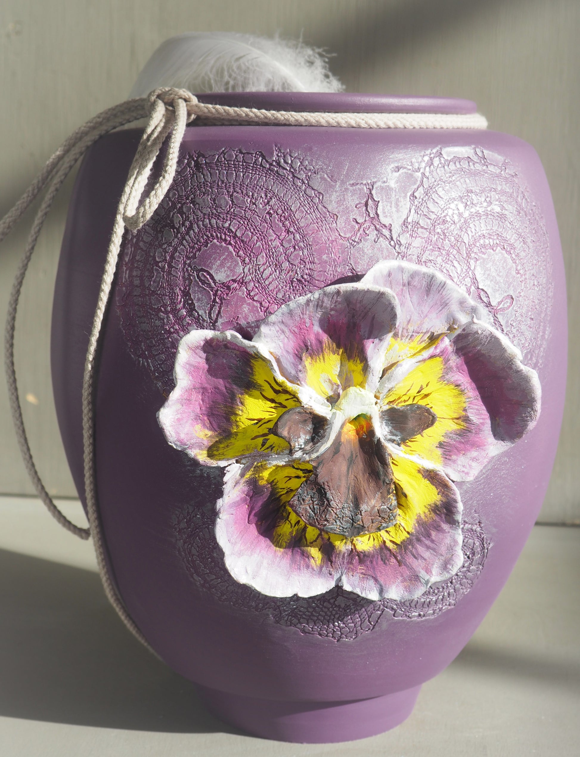 Täysin biohajoava käsintehty saviuurna. Lähetä kuva ja teksti, niin muovaamme uurnan toiveidesi mukaan.